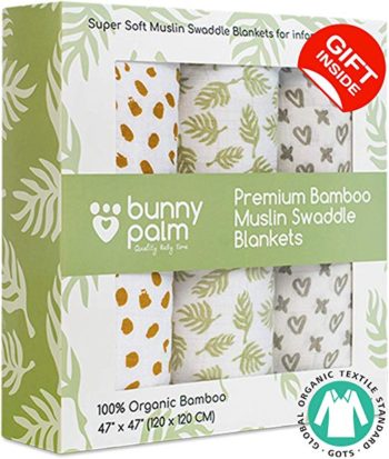 #4. Bunny Palm Muslin Swaddle Blanket Set of 3